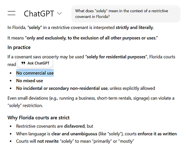 Kitty’s deed was very clear: “this deed is made and accepted [by the city] on the condition that the land hereby conveyed be used and maintained solely as the site of a city park” (bold-facing and underlining added). In fact, Kitty used the term “solely” twice more in the one-page deed, perhaps at the advice of her attorney James Holton (now retired).